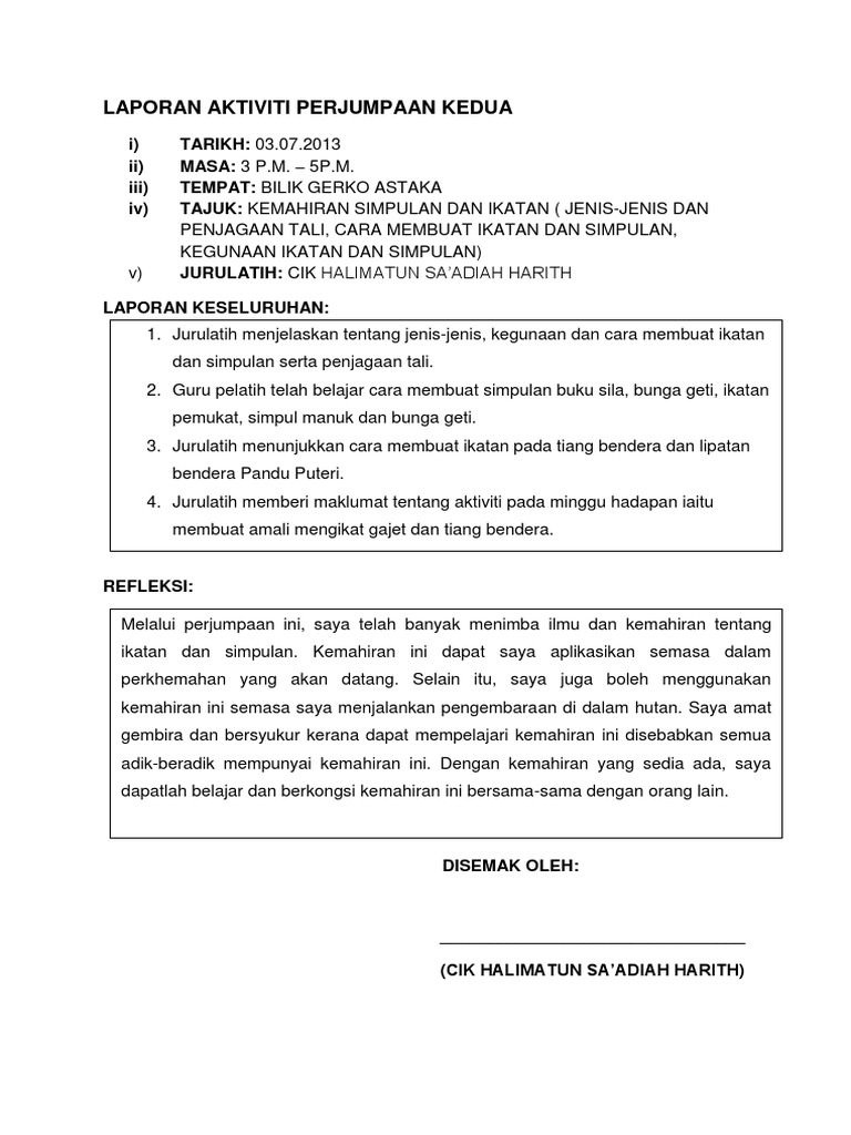 Laporan Aktiviti Perjumpaan Kedua Pdf