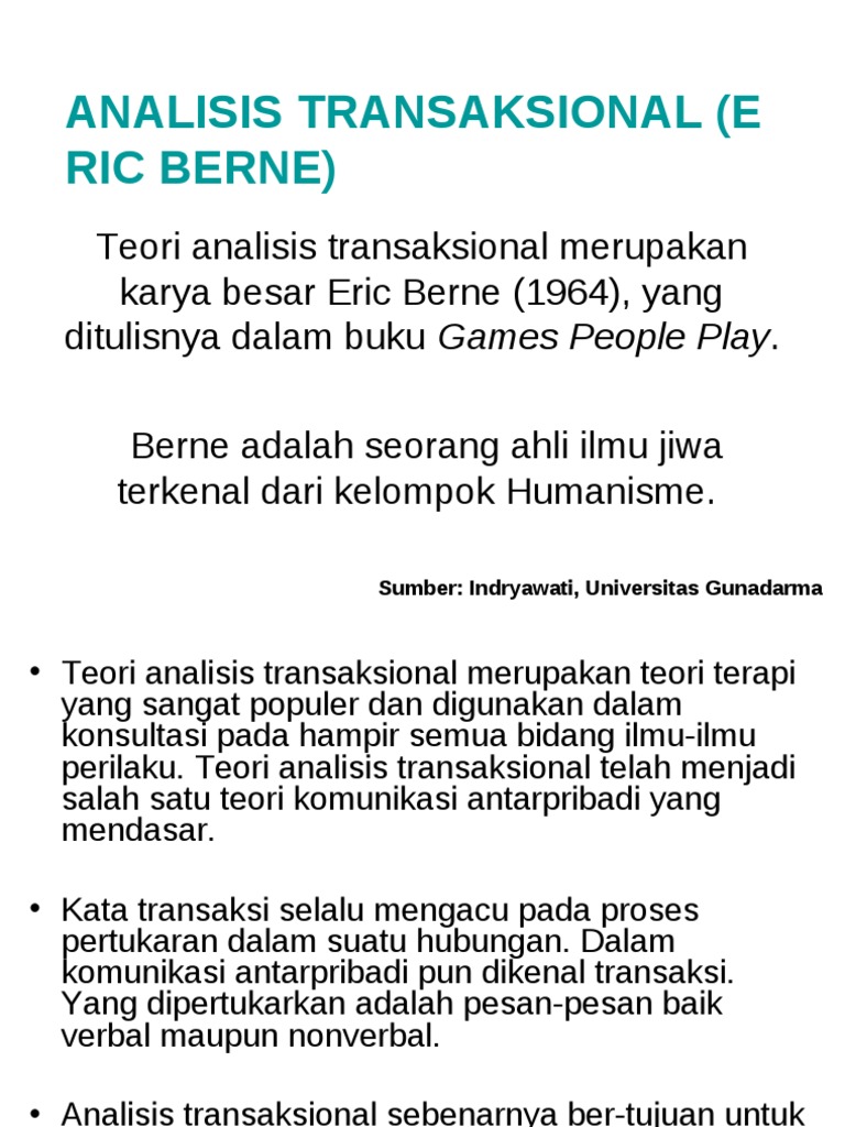 Analisis Transaksional Eric Berne Teori Analisis Transaksional Merupakan